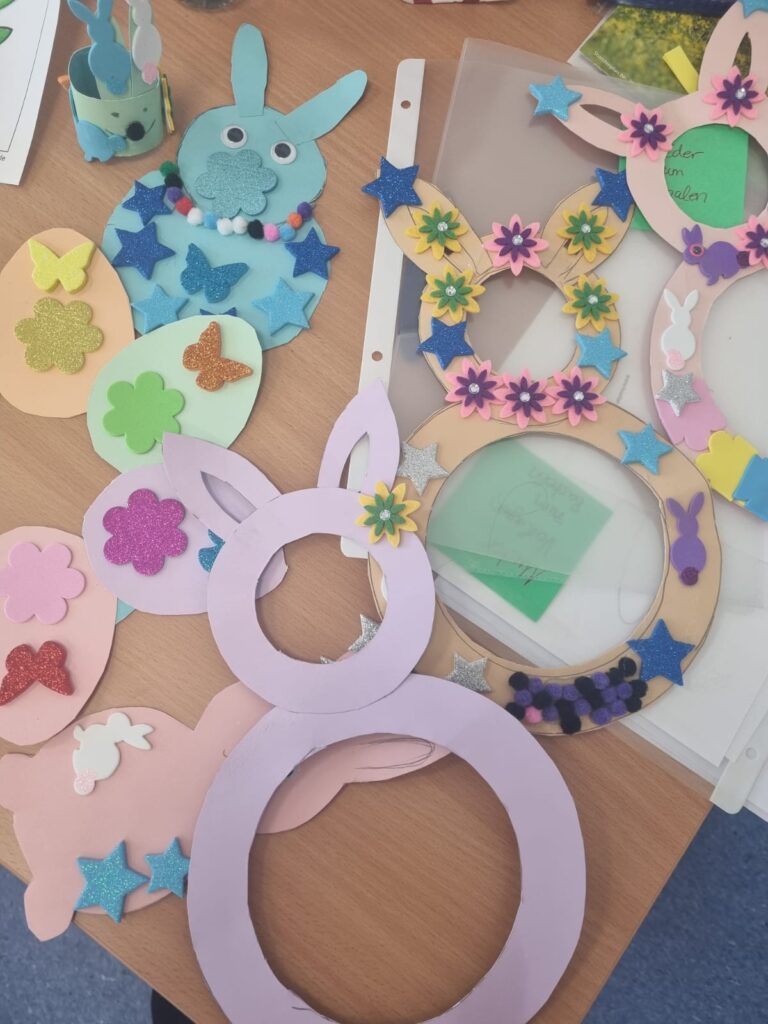 Es wurde gebastelt, gesungen, deutsch geredet und ein auch etwas Oster Schoki gesucht.