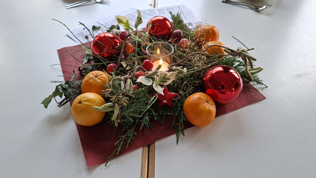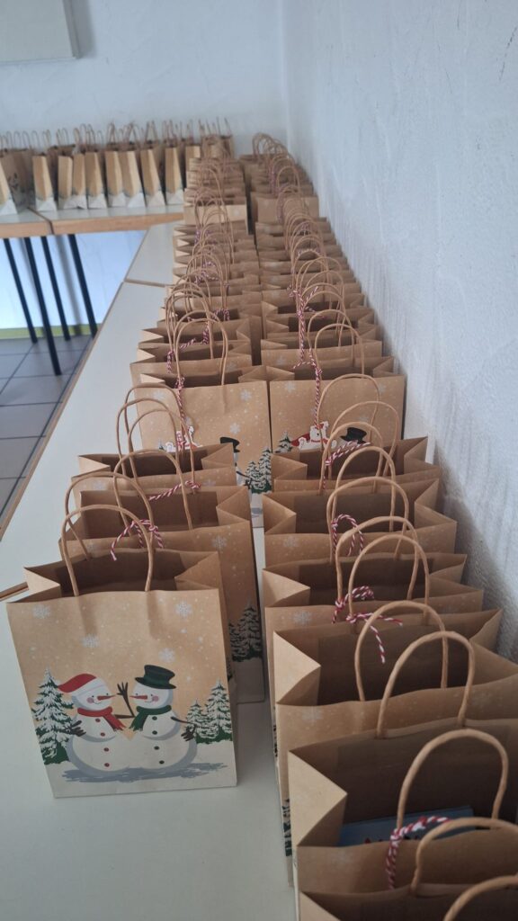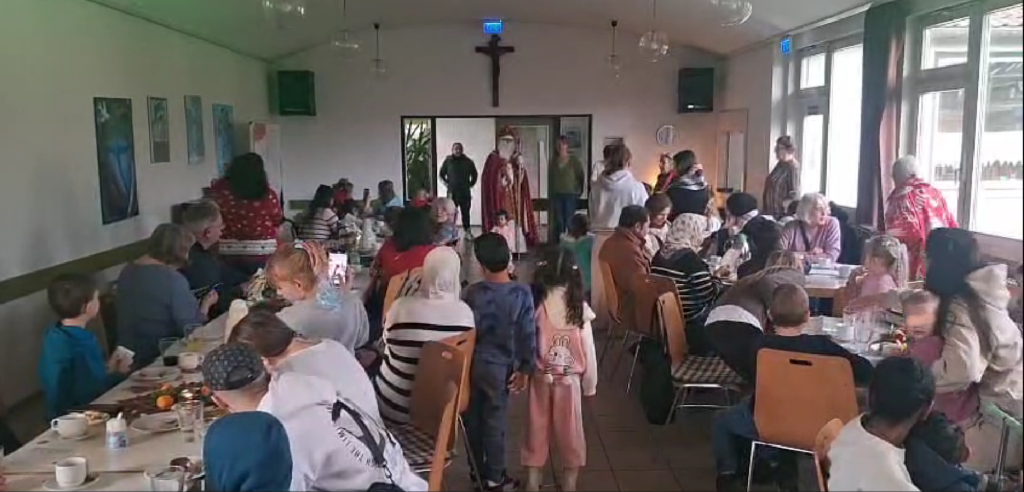 Es war eine lebendige Feier mit viel Gewusel, so wie das sein muss, mit Kindern und ihren Müttern und einigen Vätern, die unser klassisches Liedgut durchaus beherrschten. Alle nahmen den Nikolaus, ganz unabhängig von ihrer Religionszugehörigkeit, sehr ernst. Und wie sich das für den Nikolaus gehört, brachte er natürlich allen Kindern Geschenke mit.