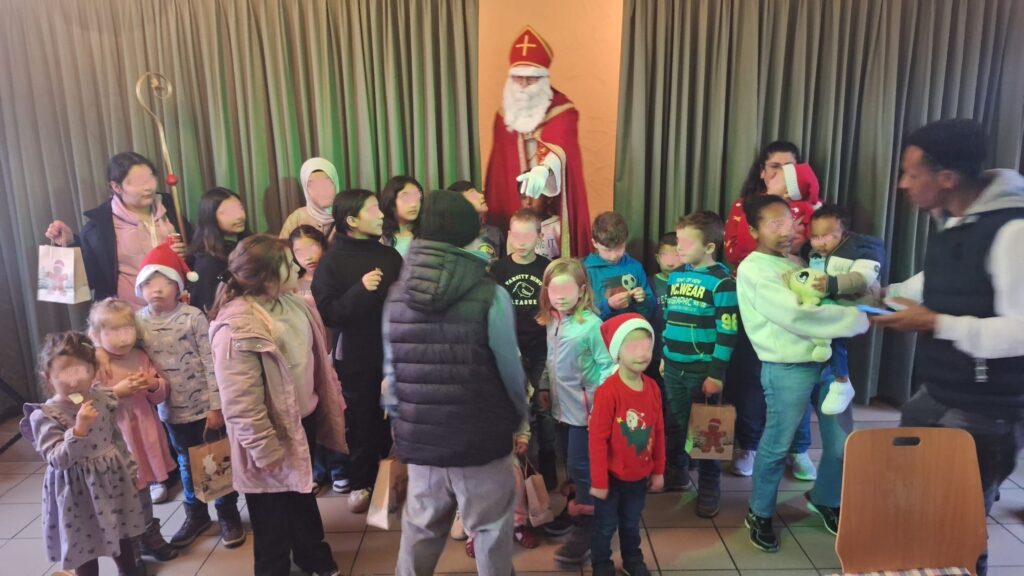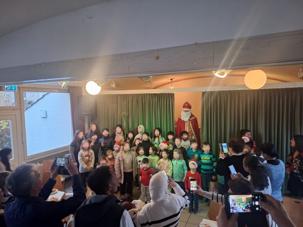 Die Nikolausfeier war mehr als je gut besucht und mit etwa 40 Kindern und gut 30 Erwachsenen fast an der Kapazitätsgrenze. Die ca. 60 Sitzplätze reichten nur, weil viele Kinder ständig im Raum unterwegs waren, darin unterscheiden sie sich offensichtlich weder durch ihre Hautfarbe noch ihre Nationalität.