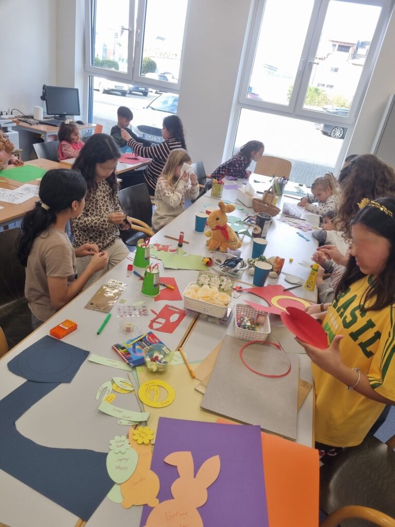 Zum dritten Mal hat die Flüchtlingsinitiative Weilerswist zu einem Bastelnachmittag im Flüchtlingsheim eingeladen. In lustiger und freundlicher Atmosphäre wurde gemeinsam geschnitten, geklebt und gestaltet. Die Kinder waren mit viel Freude dabei und konnten ihrer Fantasie freien Lauf lassen. Es entstanden bunte Osterhasen und Osterkränze sowie tolle kleine Kunstwerke, auf die alle stolz sein konnten. Auch die Erwachsenen machten gerne mit – und so wurde gelacht, gesungen und sich nebenbei ausgetauscht.